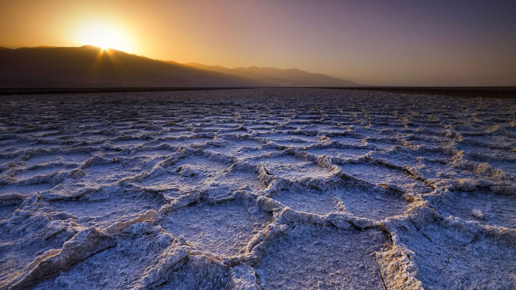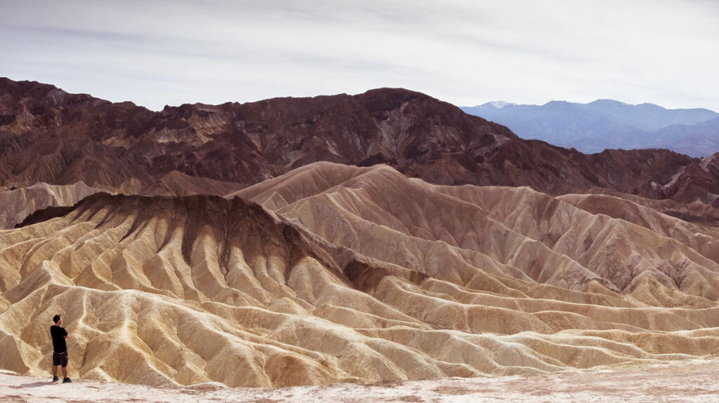 LAXから車で4時間ほど北に進んだところに「デス・バレー国立公園」があります。「死の谷」という地名は、1849年にゴールドラッシュで賑わうカリフォルニアを目指した開拓団が、この谷に迷い込み命を落としたことに由来します。この公園の絶景はZabriskie Pointというバッドランドを見渡せる展望台や、塩水湖が干上がり塩の大地がひろがるBad Water Basinのほか、美しい砂漠が広がるMesquite Flat Sand Dunesなどがあります