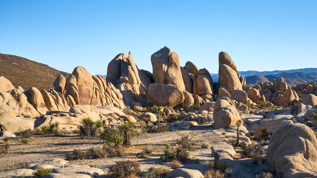 LAXから車で3時間ほど東に走ったところに「ジョシュア・ツリー国立公園」があります。ジョシュアツリーとはアメリカの南西部に自生する木の種類で、砂漠の気候に適応した尖った葉やその樹形が特徴。このジョシュアツリーが多いことから、この国立公園の名称になっています。そのジョシュア・ツリーやサボテンなどが観察できるHidden Valleyや、骸骨の形をしたSkull Rock、ハートの形をしたHeart RockなどSNS映えする風景が広がっています。