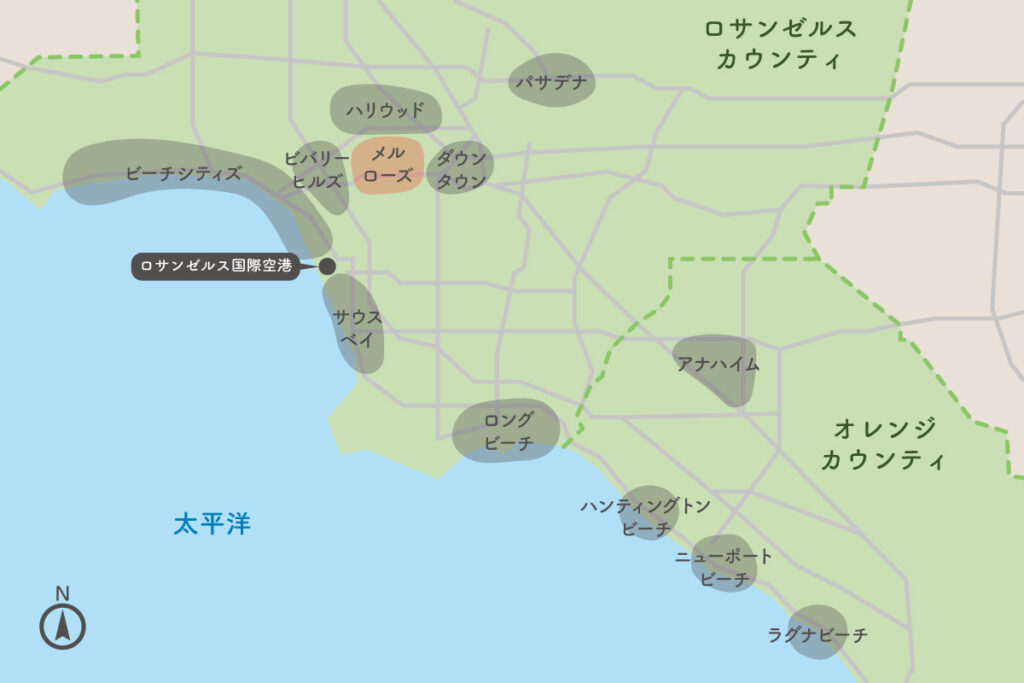 今回はロサンゼルスをざっくりと解説してみました。おおまかな距離感と何があるのか、なんとなく感覚が掴めたら何よりです。なお、ハリウッドやメルローズ、ビバリーヒルズのエリアはお互いに重なりあっていて、明確な線引きはできません。今回の記事用に、おおまかなジャンルかつ個人的な偏見で、無理やり分けていますのでご了承ください。少し時間をおいて、今回紹介した各エリアの詳細を記事にしていこうと思います。