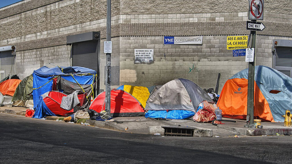 歩道にホームレスが多い場合、特にテントなどが多くある場合は、そのエリアに近づかないようにしましょう。ドラッグ中毒者の場合は危害を加えてくる場合があるので、注意が必要です。
