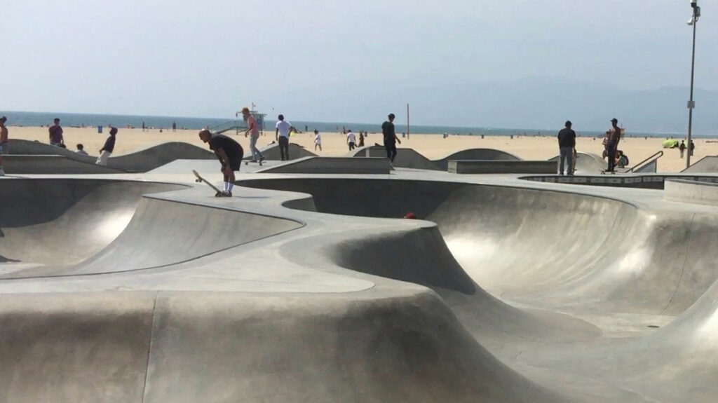 有名なスケートパークやバスケットコート、マッスルビーチなどがあり、週末でなくともアクテビティを楽しんでいる人がたくさんいるエリアです。またストリートパフォーマンスなどをしている人もいて、人が多いのでこのエリアに来たら自転車をおりましょう。