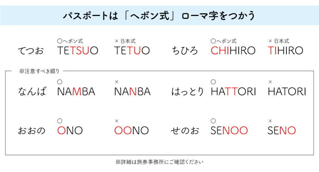 チケットとパスポートとの名前ローマ字が完全一致しないと、飛行機に搭乗できません。特にパスポートのローマ字はヘボン式を使用するとなっているので、いつもヘボン式ローマ字をつかってないと、チケットとパスポートのローマ字の不一致ミスをしてしまいます。